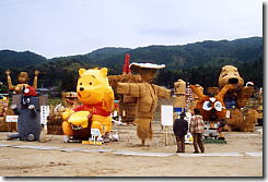 column つぶやきファイル-2:里美村かかし祭 見た事ありますか? 349号線常陸太田市から里美村方面へ走ると大きなかかしに逢えます。 毎年、秋のイベント里美村のかかし祭りに参加して、はや9作目。人気のキャラクターは? 何を作るの・・・誰が作るの・・・どうやって作るの・・・。 今年も楽しみに待っててくださいね! 【2003】 ↓↓↓↓↓ 過去の作品を掲載しています ↓↓↓↓↓ tagPlaceholderカテゴリ: column