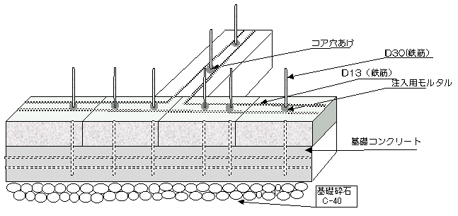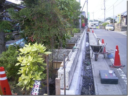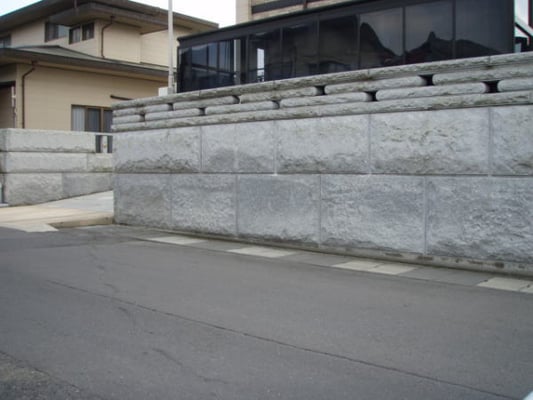 比重が重いため基礎部分は大谷石に比べて1.2倍の強度をもたせ(コンクリートの強度を強くし)、鉄筋もD13以上を使用するなど、設計強度には余裕を持たせる必要があります。